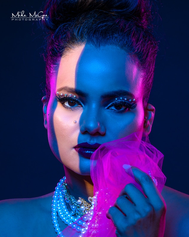 If you are looking for a unique and bold portrait, creative hypercolor portraits are striking and have a strong visual impact. My hypercolor images are portraits with colored gels that are vivid, colorful, and vibrant. I really enjoy shooting hypercolor shots, because not many photographers shoot these, and they combine two of my biggest strengths: photography and digital post-production.